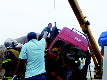 | 事故造成柴油泄漏,一人被困驾驶室 | |