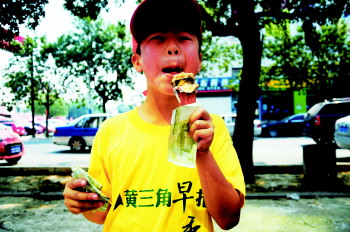 8月23日,在肯德基门口,8岁的营销秀小选手赵梓萱拿着一摞《黄三角早报》沿街叫卖,今天他终于圆了自己去年的心愿,当了一次小报童。 “去年他就想参加,但是我跟他妈妈上班太忙,没时间陪他,心里觉得挺愧疚。”赵梓萱的爸爸告诉记者,今年赵梓萱暑假一开始时又报了游泳培训班,结束以后才有机会来参加营销秀。“今天早晨他在菜市场碰见小报童就买了一份,我以为他要看,结果他又以原价卖了出去。这不,我一看他这么有激情,就跟他去报社报了名,取了20份让他先卖。” “有个叔叔一下子买了我5份!”赵梓萱兴高采烈地拿着五元钱,跑到记者身边得意地说。可以看出参加这次营销秀让这个小家伙十分兴奋,“虽然一份报纸只有一块钱,但这是我人生中的第一次销售,卖到十份我就可以奖励一下自己,去买支雪糕吃!”赵梓萱告诉记者,卖报过程中,遇到人他会就冲上前去,礼貌地问对方是否愿意购买报纸。性格开朗的他每售出一份报纸,都会朝记者做个鬼脸,虽然时有碰壁,但被拒绝丝毫不影响他的心情。用他的话来说就是,“享受的是自己卖报的过程。” 赵梓萱热情地对每一位顾客喊,“叔叔阿姨买一份报纸看看吧,一元一份,里面的内容很精彩的!”由于卖报的效率比较高,9点刚过半他就把十份报纸卖完,然后像个小老板似的把兜里的零钱掏出来整理,算完账,把叠得整整齐齐的钱放进兜里,这才心满意足地笑了。“不错不错,快去买个甜筒奖励自己吧。”爸爸高兴地说。 “这个小伙子真讨人喜欢,年龄这么小,就这么有礼貌,虽然我不识字,但我还是要买份带回家给我孙子看,有机会让我孙子也参加。”一位上了年纪的女士说。在银座商场门口,市民刘女士说:“这么大热的天,这个孩子这么有激情,看着他推销报纸,都不忍心不买。”