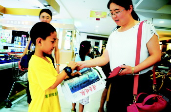 王群书: 卖报让我了解父母的辛苦 文/片 本报记者 周晋 他们都说自己长大了 23日早晨,小选手们准时出现在大街小巷,开始卖报。在银座商城门口,记者看到有一个小男孩比较特别,他一个人挎着小包,拿着预订的报纸,来回推销、找零。有人经过,他就主动上前,“阿姨,我是卖报的小选手,您买报纸吗?” 记者采访了解到,这个独立行动的小选手叫王群书,是晨阳小学的学生。王群书爸爸说,通过几天的磨练,王群书越来越大方主动了,已不像当初卖报时那么紧张。 “第一天卖报时我很紧张,还担心能不能卖完。虽然有爸爸在旁边陪着我,可是遇到卖不出去的情况,我还是就挺沮丧的。”王群书告诉记者,这些天爸爸一直辛苦地陪着自己,以前中午下了班回家后,吃完午饭还可以睡个午觉,“现在为了陪我,爸爸不光睡不了午觉,有时候连口饭都吃不上。”通过这几天的卖报,王群书收获了不少,也总结了不少卖报的经验,更懂得了爸妈平时工作的辛苦。 “他不喜欢我跟着,虽然对汽车站和商场一带很熟悉,但还是会担心他,有空我就偷偷瞅一眼。”其实王群书的爸爸在一旁时刻注意着儿子的动向,并给予鼓励,“平常心对待,排名不重要,遭人拒绝是正常的,如果别人买了报纸,你要对别人说声谢谢。”王群书的爸爸向记者说,儿子平时性格比较内向,和陌生人的话不多,这次参加卖报活动对他来说的确是个挑战。看到孩子渐渐学会独立和感恩,就感觉陪着孩子卖报很值。
