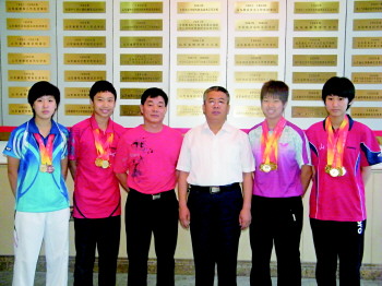 8月8日至11日,2013年国际乒联青少年巡回赛暨青少年公开赛中,东营培养输送到国家队的乒乓球运动员于子洋与队友获团体冠军;8月20日,刚结束的2013年第二届亚青会上,刘高阳获得乒乓球项目女子单打冠军;为迎接十二届全运会,商圆圆、顾玉婷正在为此集训。而这些队员都受过同一教练的培养,他就是“奇人”教练任永忠。 “一二一,跑起来。”这个铿锵有力的声音来自一位58岁的“老头”。他身穿一件粉红色的运动T恤、蓝色的运动短裤,170厘米左右的个头。眼前这位正在教孩子打兵乓球的老师,让人很难跟东营市出师的三名国家兵乓球队运动员联系起来,而他就是胜利一中的体育老师兼兵乓球教练任永忠。 他对兵乓球的热爱胜过一切,只要一有比赛他都会亲历现场,高喊助威的同时研究球技,在生病住院的情况下,也会尽量缩短住院的时间,跟学员们在一起。“有时候也埋怨他顾不上家,但不让他去打球,他会更难受。”任永忠的老伴王女士说。 随身带着速效救心丸的他还是坚持到体育馆进行训练,“任教练和孩子们联系的比我们都多,他既当老师又当家长,我们有什么事也都跟他商量。”回想起孩子跟着任老师打球的日子,商圆圆的爸爸满是感激。 23日,记者与正在比赛的刘高阳取得了联系,她告诉记者,她从5岁半就跟着任老师打球,“从我进入省队、国家二队、国家一队,这一路任老师在见证我的成长,他一直把我当自己的孩子看待,我非常感谢他,在我眼里他是一个好教练,我会继续努力,不辜负老师的期望。”