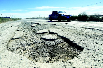 | 现在仙河镇去往东营港的道路坑洼不平。 本报记者 任小杰 摄 |  | 兴港路项目效果图。 |