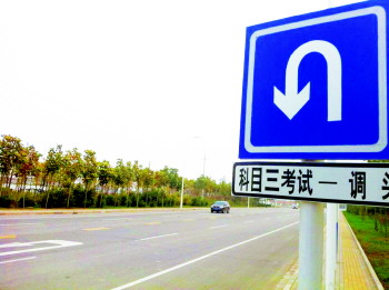 | 折返点处变更车道并调头是一个难点,很容易丢分。 本报记者 聂金刚 摄 |