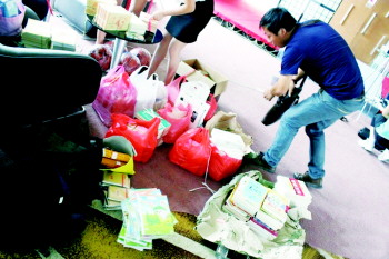| 给老人建书屋的倡议发出后,不少市民送来书籍。 本报记者 王逸飞 摄 |  | 志愿者整理爱心物品。(资料片) |