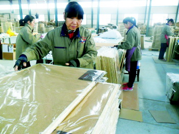 | 一帆文教用品有限公司工人正在将留言板装袋封口。 本报记者 王逸飞 摄 |