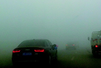 | 由于能见度极低,迎亲车队被打散。 本报记者 聂金刚 摄 |