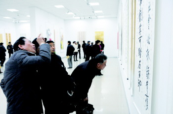 27日,东营迎新年书画联谊展在黄河美术馆开展,本次展览是从全市范围内征集到的近500副书画作品中遴选出157幅优秀作品供市民参观,是历届以来收集到市民作品最多的一届,本次展览共持续三天。 本报记者 段学虎 摄影报道