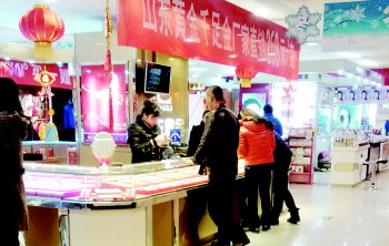文/片 本报记者 自去年年初以来,国际金价一直“跌跌撞撞”一路下挫,加上商家在元旦前后推出多种优惠活动,东营市场上多数黄金饰品价格再入“2”时代,吸引不少市民出手购买。而另外一方面,对黄金投资多数人态度谨慎。 商家优惠,金价再降 3日,记者走访东城和西城多家商场看到,无论是中国黄金等一线品牌,还是山东黄金等本土品牌的千足金饰品,价格多不超过300元/克,部分品牌价格甚至跌倒了268元/克。此外,在商场外或黄金饰品专柜前,优惠的措施和当日销售价格也被标注在最显眼的位置。 “元旦活动今天还没结束,每克可以优惠20块钱,合到280多元/克。”3日,在西城济南路利群瑞泰广场中国黄金柜台前,一工作人员向市民介绍当日优惠时说,尽管3日国际金价涨了7块钱,为311元/克,但他们是根据前几日的价格给予的优惠,“现在更实惠了”。 “从2013年三四月份开始,国际金价便开始一路下跌,虽然后来价格有过回升,但幅度并不大。”西城济南路商业大厦内,梦金园黄金饰品专柜工作人员告诉记者,由于商场搞活动,他们的千足金饰品价格为289元/克,“2013年同期是400多元/克。” 不仅西城各大商场内黄金饰品大幅降价,东城一商场内,一山东本地黄金饰品品牌更是在销售专柜前直接扯出了“厂家直销268元/克”的促销条幅。 市民元旦商场热购 国际金价下跌,加上元旦商家活动的影响,购买黄金饰品的市民挤满了各商场内黄金饰品销售专柜,甚至有人准备将此作为“年货”。 在对比多家店的价格后,家住东城的王女士买了两条手链,“过年的时候送给妈妈和婆婆当礼物,280多元/克的价格,比原来便宜多了。”准备五一结婚的庄先生给未婚妻选了一对耳环、一个戒指和一条项链,“预算是一万多块钱,现在金价低了很多,买了这些之后还能买点其他的,挺合适的。” “一次买五六十克的顾客很多,几乎天天都有,按照现在280多元/克的价格,60多克一共是两万块钱左右,比去年同期便宜多了。”一商场内黄金饰品专柜的店长告诉记者,与去年同期相比,他们商场一楼的多数黄金饰品专柜实现了销售额增长。 此外,记者从各大黄金饰品专柜处了解到,与配戴的首饰热销不同,金条等投资型产品并不是那么紧俏。对此,一业内人士称,“买金条做投资的话,很多人会选择从银行购买,通过专柜买的有限。” 相对其他可投资的贵金属,市民李先生认为黄金的盈利空间有限,而且相对风险更大一些,“曾经也买了一些黄金投资,并没有赚到钱。”东营一期货交易公司有关负责人也称,他们有黄金期货,但入手的市民并不多。除了需要交付相对较多的保证金外,国际金价一路下跌也让不少投资者对投资黄金更加谨慎。