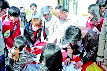 本报去年相亲会现场,不少前来参观的市民也临时报名加入了相亲队伍。 (资料片) 本报记者 段学虎 摄