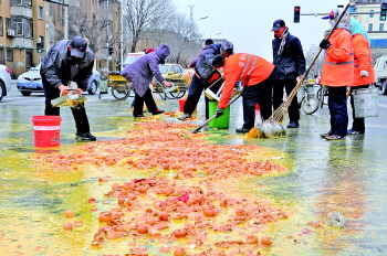 东营人,好样的!17日上午,一辆满载鸡蛋的小型货车经过北二路与嵩山路路口时,由于车厢里的鸡蛋筐固定不牢,摔落在地。不少市民和网友纷纷赶来帮忙,40筐鸡蛋大约捡出来10筐。车走了之后市民又开始打扫现场! 本报实习生 刘海滨 摄影报道