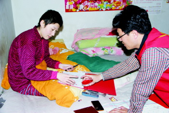 义工入户给贫困家庭送去2500元的资助金。