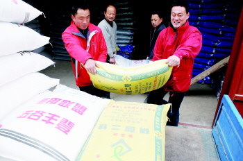 2月21日,牛庄镇西范村种粮大户王永建正高兴地把享受惠农补贴的肥料装上车。东营区供销社在牛庄镇开展“放心农资惠万家”活动,为农民送上放心农资,推动牛庄镇春季农业生产。据了解,本次活动每袋化肥享受10元不等的补贴,让农民们真切地享受上了惠农补贴。
