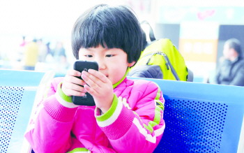 长途汽车站内,一位孩子正在熟练地操作成年人的智能手机。 (资料片) 本报记者 段学虎 摄