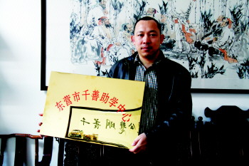 薄其勇拿到了“东营市千善助学中心”的牌子。