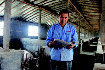 张永峰正在翻看账本,他感叹:生猪一天天肥起来,却没有一点儿成就感。