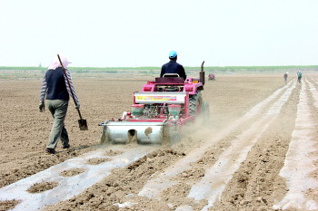 22日,在广饶县丁庄镇北常村的地头上,新一年的机采棉开始种植。据了解,今年是东营进行机采棉种植的第三年,种植面积也由5000亩扩大到20000亩。采棉机通过等行距播种等方式改变种植规格,克服了棉花采摘的机械化难题。每亩棉花人工费用节省近300元,让棉农实实在在体会到机械化的好处。