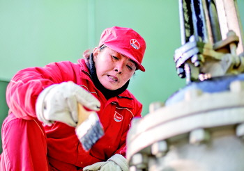 戚春兰对设备进行保养。 本报记者 顾松 通讯员 尹永华 摄