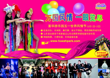 今年五一去哪儿?到富华游乐园看世界风情节演出吧!2014年5月1日至3日,富华游乐园“世界风情节”欢乐开启,届时,欧美电声乐队将为您带来原汁原味的欧美电声乐队文化,肯尼亚非洲鼓将为您呈现非洲文化的独特风情,狂欢桑巴舞带您享受富华狂欢盛宴,美丽的不倒天使会与您不期而遇。五一劳动节期间,富华游乐园游乐项目不限次数乘坐,满足你惊险刺激、家庭亲子、温馨浪漫全方位游乐需求。