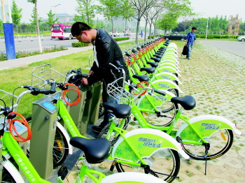 3日,广饶县投入600余万元的全市首个公共自行车租赁系统开始试运行。据了解,广饶县共在28处站点首批安装了1000辆公共自行车。试运营成功后,广饶县计划在今年建设运行38处自行车服务站点,解决广饶城区公交“最后500米”问题,实现“自行车+公共交通”的绿色出行目标。 本报记者 聂金刚 通讯员 张航校 摄