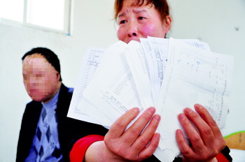 郗翠香手里拿着一摞化验单,她丈夫的病每隔一段时间都要去医院检查一次。 本报见习记者 刘海滨 摄