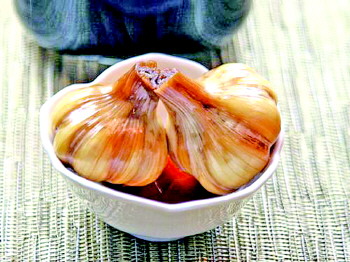 2、将泡过后的蒜用精盐腌着,每天要翻一次缸,腌到第四天捞出晒干;
