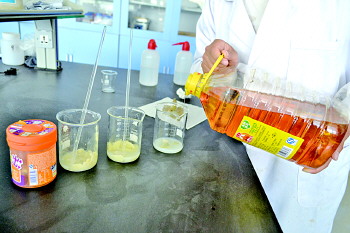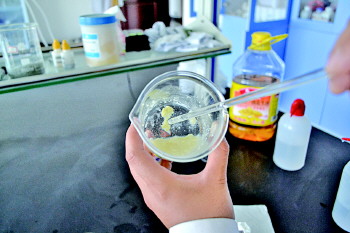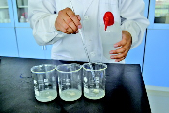 实验员将3粒口香糖分别放入盛有25毫升蒸馏水的烧杯中。