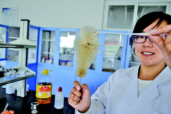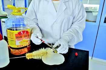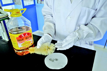 不到两分钟,试管刷毛上的口香糖被花生油溶解。