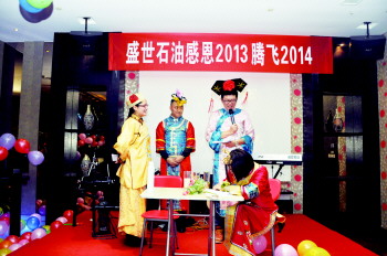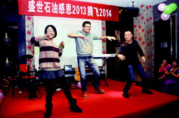 盛世石油科技的员工在联欢会上表演节目。 (盛世石油科技提供)