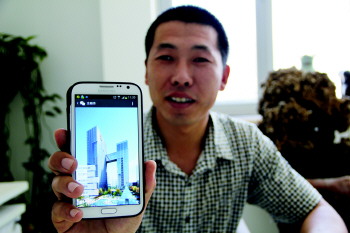 总经理刘国庆在展示为客户开发的微信服务账号,功能远比宣传单丰富。 本报记者 杨玉龙 摄