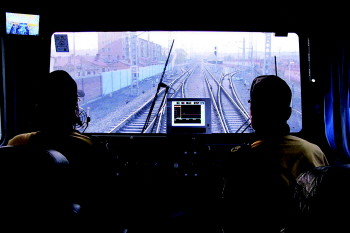 ▼工作人员正在京包铁路(卓资山至葫芦段)进行线路捣固作业。