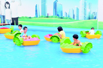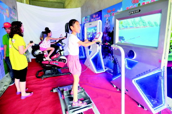 | 水上划船项目吸引着许多的小朋友。 本报记者 任小杰 摄 |  | 4D科技馆内,小朋友玩得很过瘾。
