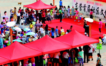 | 虽然现场烈日晒,但仍挡不住居民参与活动的热情。 本报见习记者 刘海滨 摄 |