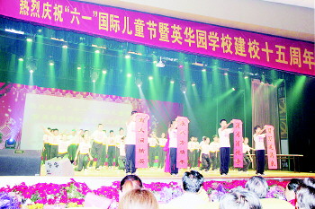 本报讯6月3日讯(记者 聂潇潇 通讯员 于海凤) 5月30日上午,东营英华园学校举行了“庆‘六一’暨建校十五周年庆典”。东营市人大、东营市政协等各级领导、英华园学校师生、历届校友及社会各界友好人士共同参加了此次庆典。 会上,英华园学校校长王保理致辞。东营市政协主席陈胜在庆典上肯定了英华园学校十五年来所取得的成绩,特别指出学校在国学教育、英语教学和校园文化建设方面的特色。 会后,由学校师生共同排练表演的文艺演出正式开场。气势恢宏的《盛世鼓舞赞英华》、诗歌朗诵《我的中国梦》、京剧《沙家浜》等节目,一场创意环保时装秀得到观众的喜爱,孩子们用废旧塑料、报纸、蔬菜为原料做成的时装,得到观众的阵阵掌声,孩子所展示的刻盘、彩泥画、书法、丝网花等作品,则展示出英华园学校“注重基础,尊重差异,因材施教”的办学理念。