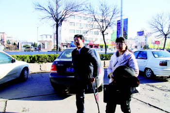 29日下午,记者来到高伯良在西城北二路的山东奋飞律师事务所。记者看到一位拄着拐杖的中年男子的身影,看上去四十岁出头的样子。