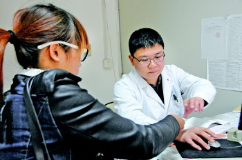王文杰正在给病人看病。