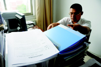 ◤2日,行政复议科工作人员,对收到的申请材料进行审核整理。 本报记者 段学虎 摄