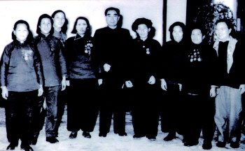 1958年12月,周总理在中南海西花厅接见李田英(左四)等7位女劳模。 图片由李田英女儿孙建华提供