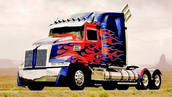 “擎天柱”作为影片中最重要的角色之一,以全新的升级造型亮相。前三集中,由于"擎天柱”已严重受伤,所以新的一集中,西星(Western Star)卡车成为“擎天柱”新的原型车。西部之星是德国戴姆勒集团旗下的分公司之一,这次擎天柱换装的4900卡车,一身红色的拉花火焰,让它看起来更显霸气,整个显示屏都亮了起来,是的,未来世界总是让人期待:半挂车原来也可以这么酷。