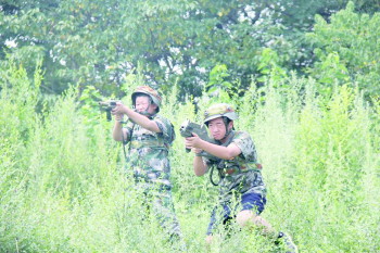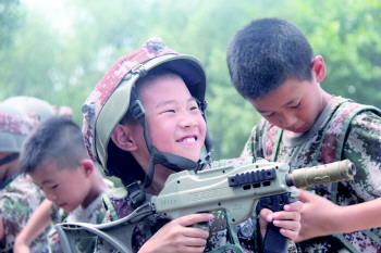 17日,参加五天体验营的小记者们即将离开。临行前的最后一天,大家终于迎来了期盼已久的真人CS野战,拿起“战枪”的他们痛快地体验了一把。16日晚上的篝火晚会为即将离开的小记者们送行,大家表演节目,互相拥抱,共同回忆着这难忘的五天。