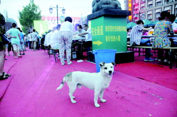在公共场所,散养狗并不少见。 本报记者 段学虎 摄