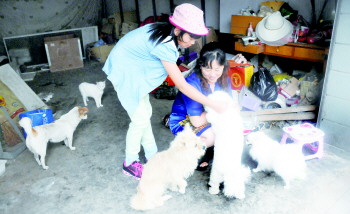 刘景梅与女儿一起照顾收养的流浪猫狗。 本报记者 段学虎 摄