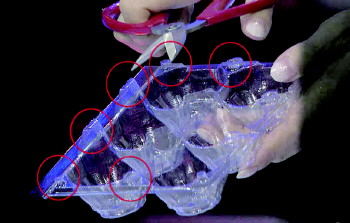 经过加工的鸡蛋包装盒,每个凹槽内部空间更接近圆形。肉馅在圆形空间内可以360度均匀受力,所以晃出来的形状就会比较圆了。