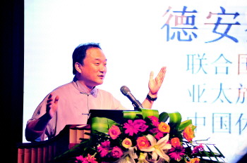 贾云峰在论坛上发表演讲,向大家讲解旅游文化的发展走向。 本报记者 任小杰 摄