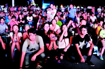 8月8日,现场观看义演的观众止不住地留下了泪水。 本报记者 任小杰 摄