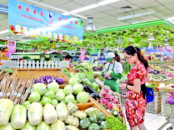 12日,记者在东城胶州路、运河路走访多家大型超市发现,仅有一家大型超市内的一个品牌的“绿色蔬菜”贴有绿色食品标志,而其他部分虽然也被销售人员称为“绿色蔬菜”,但并没有标志,或者仅仅是在条形码上打印上了“绿色”。