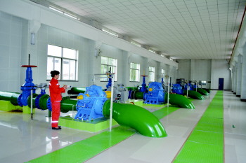 .胜利供水东区分公司辛安水厂职工在新清水泵房巡检设备。 通讯员 丁玲 摄
