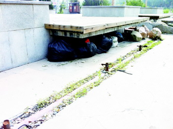 “这些人也太没公德心了,怎么能把垃圾堆放到公园里呢?”21日,家住辛镇小区一期的某居民反映,小区西门附近公园内一木板走廊下堆放了六七个装满垃圾的黑色垃圾袋,严重影响了公园环境。