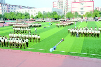 东营市一中的学生正在军训。 本报记者 段学虎 摄