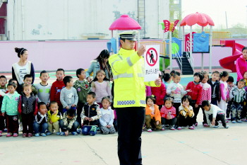 民警与老师共同组织孩子们认识基本交通器材,讲授最基本的交通安全常识,用简单易懂的动作教孩子们识别交通标志。此次活动的开展,进一步提高了孩子们对交通安全知识的认识。 本报记者 杨玉龙 通讯员 王学志 摄影报道