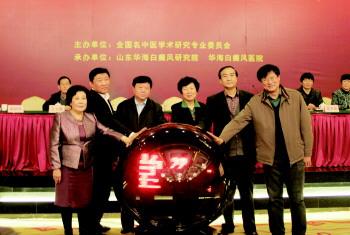 国家中医药管理局吴刚副局长(左三)、医政司许志仁司长(右二),山东省中医药管理局贾青顺副局长(右一)等领导共同启动“白癜风科学大讲堂”走进百城公益活动。