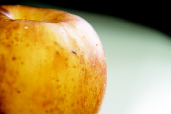 热水浸泡过的苹果擦干后开始往外冒“水珠”。 本报记者 郑美芹 摄